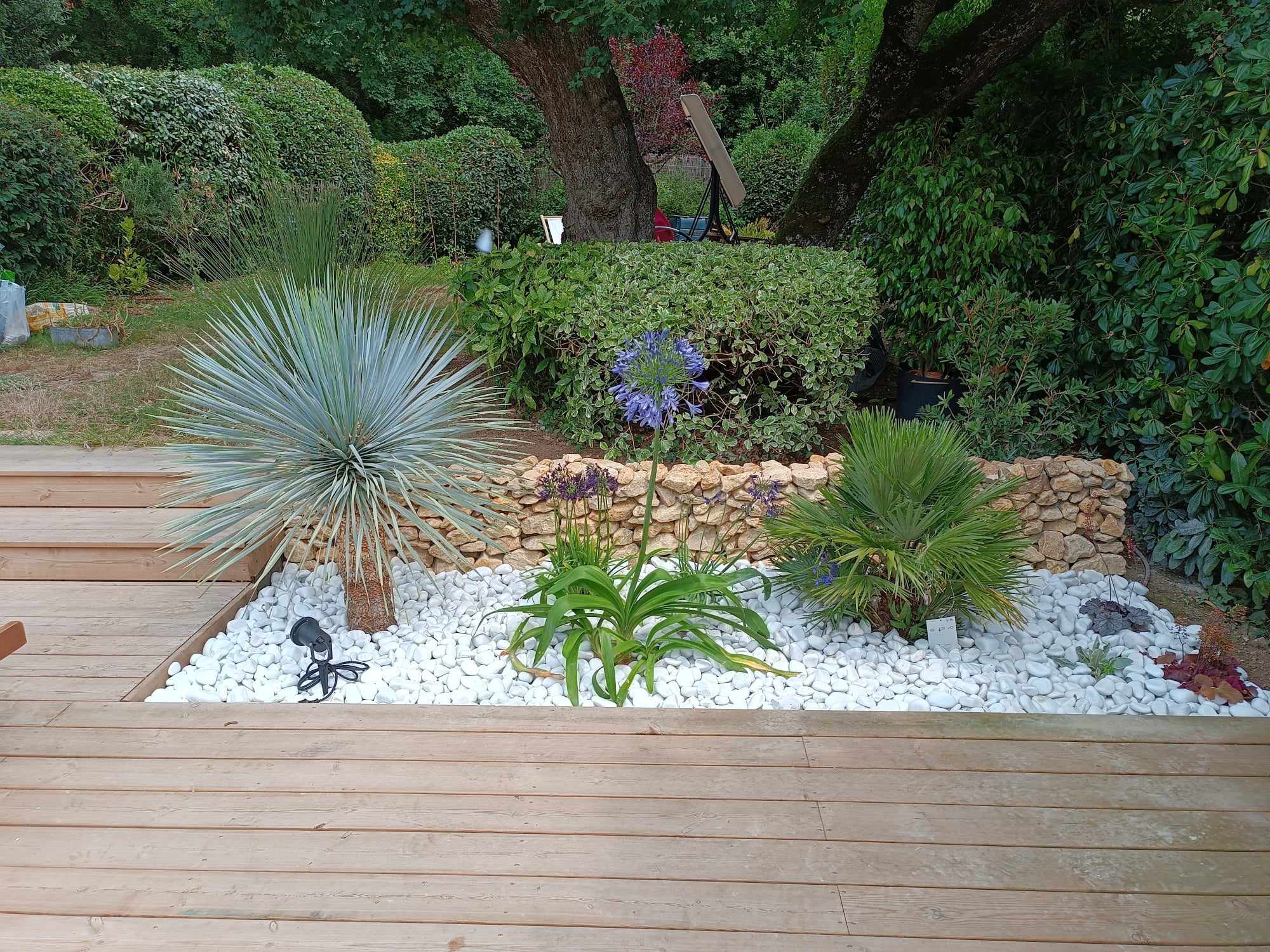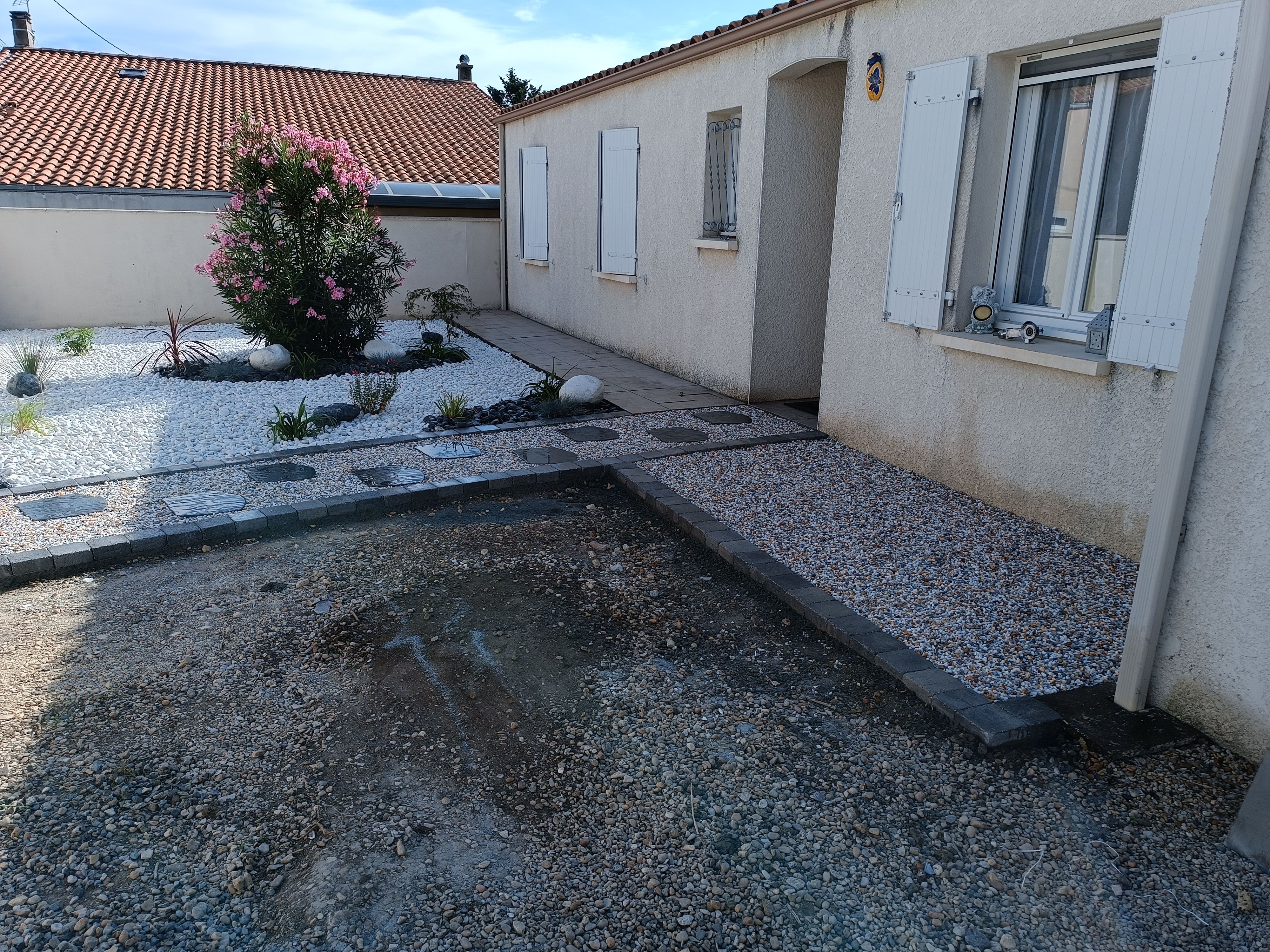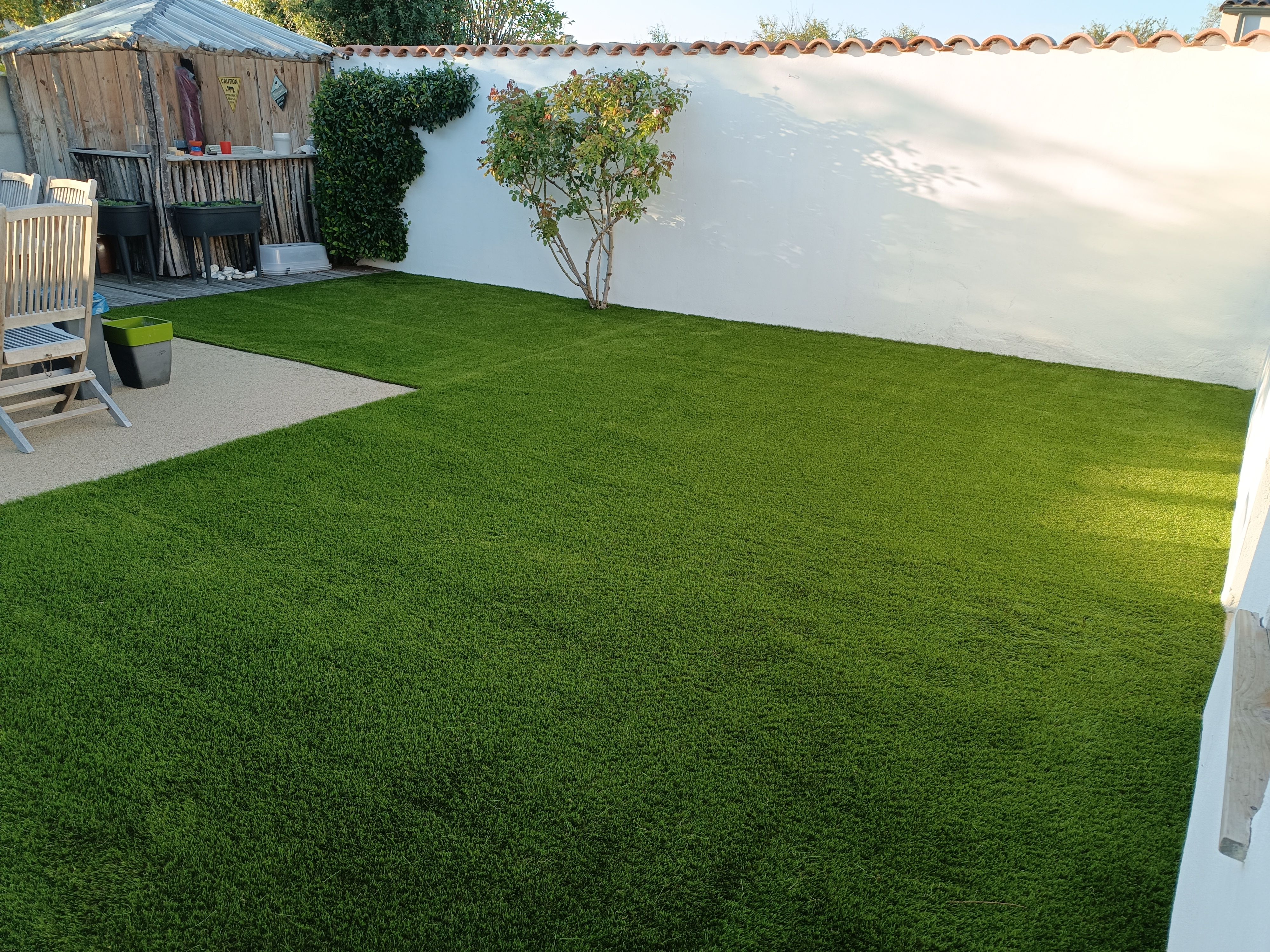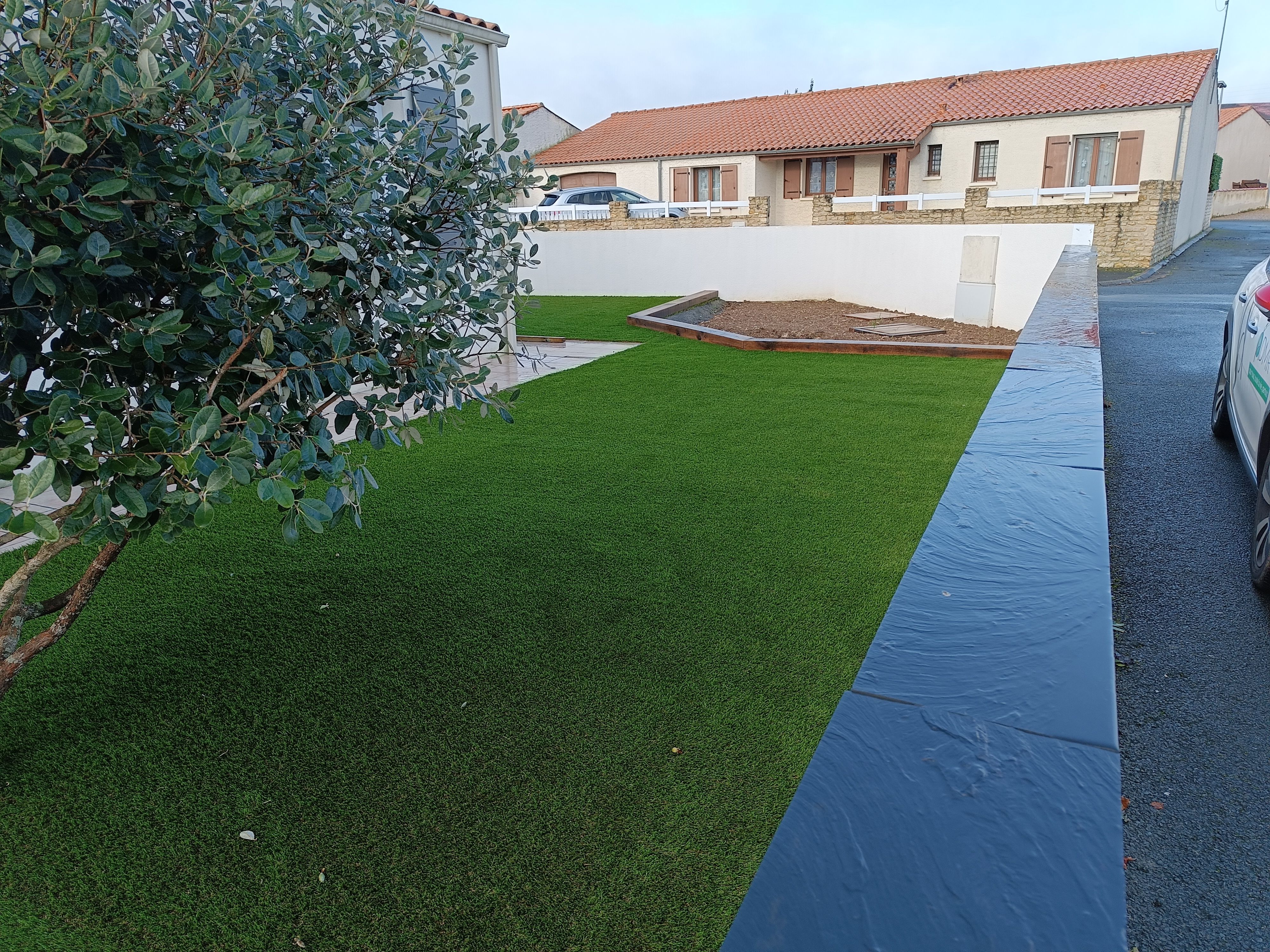 Gazon plaquage / semis Gazon synthétique Terrasses bois Maçonnerie paysagère Nidagravel (plaques stabilisatrices) Plantations Minéralisation ou paillage naturel Taille en tout genre (oliviers, rosiers, haies...)