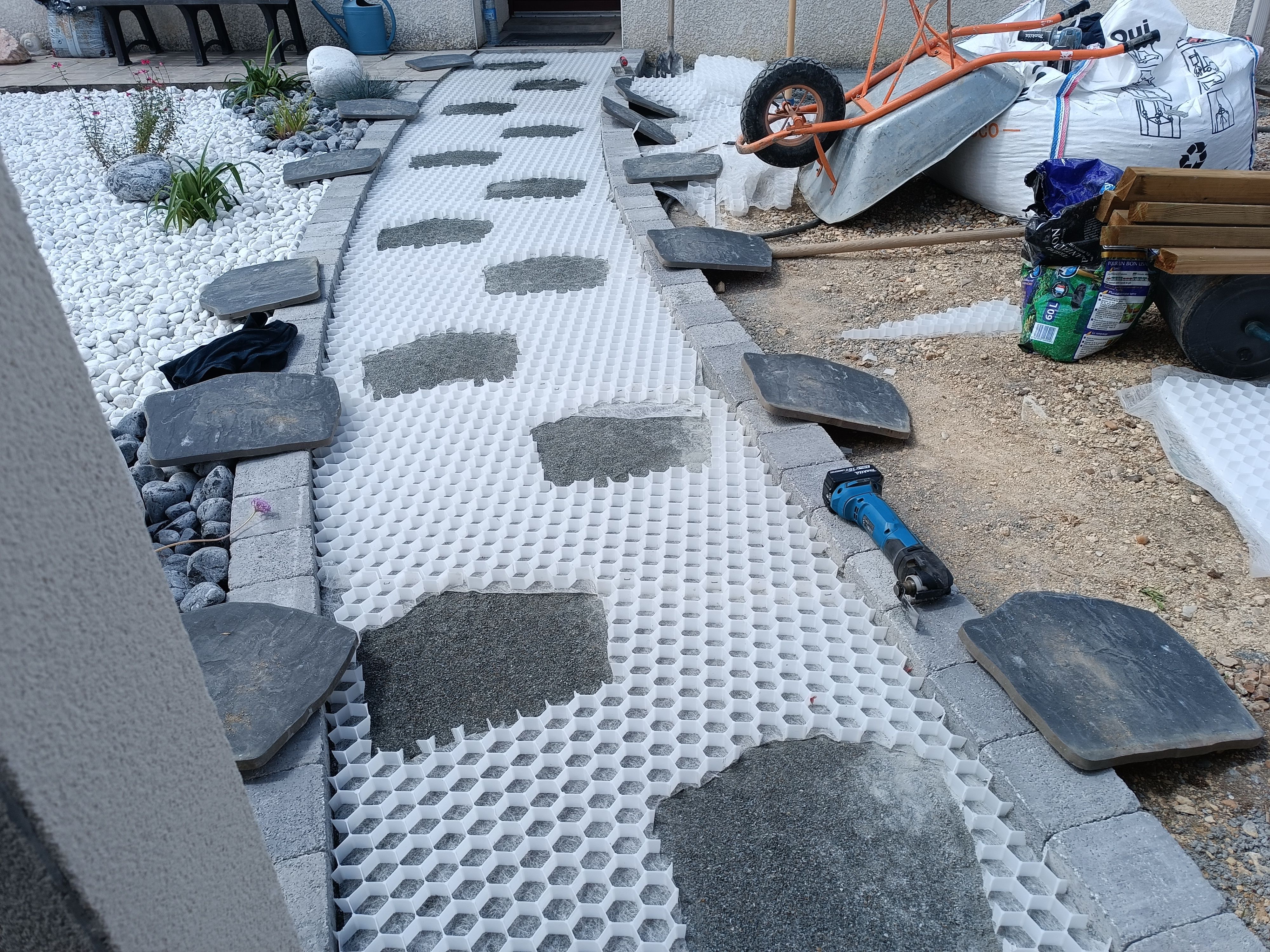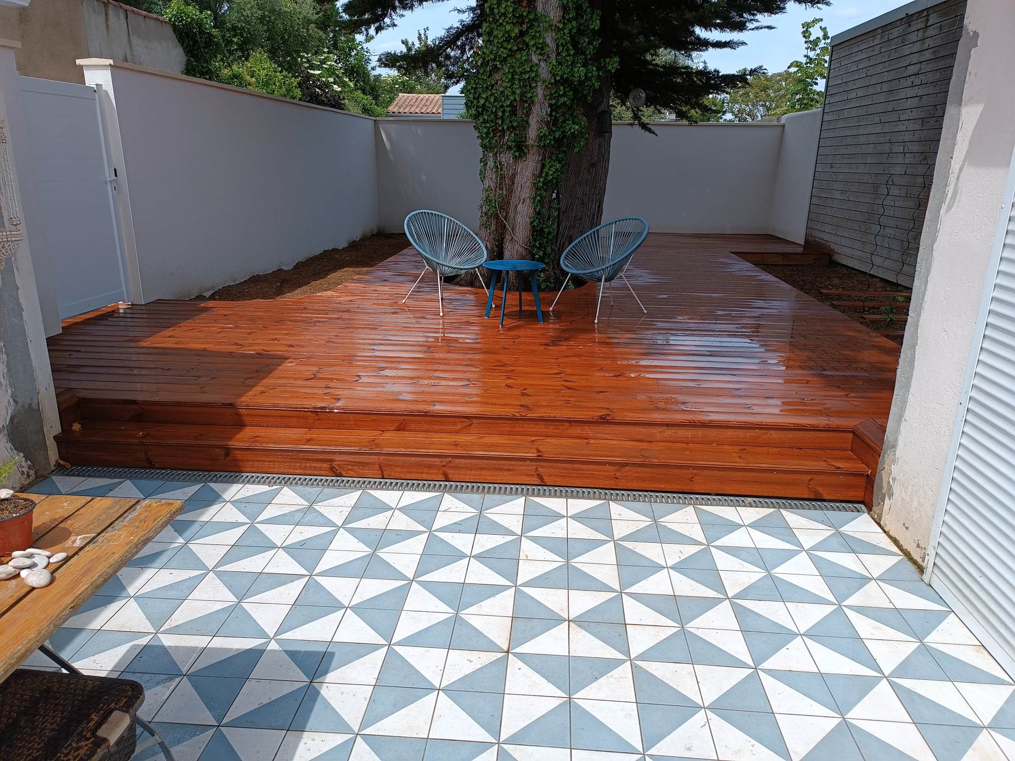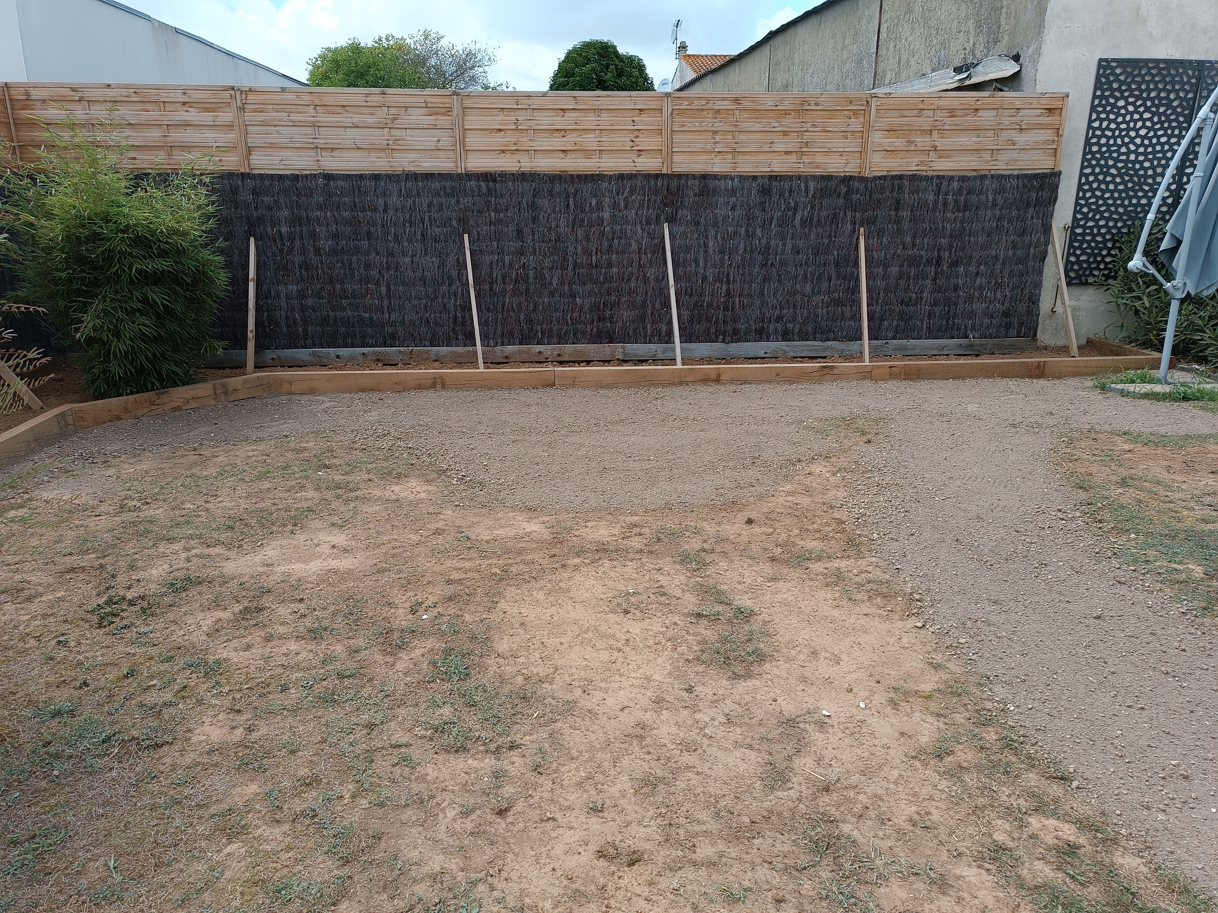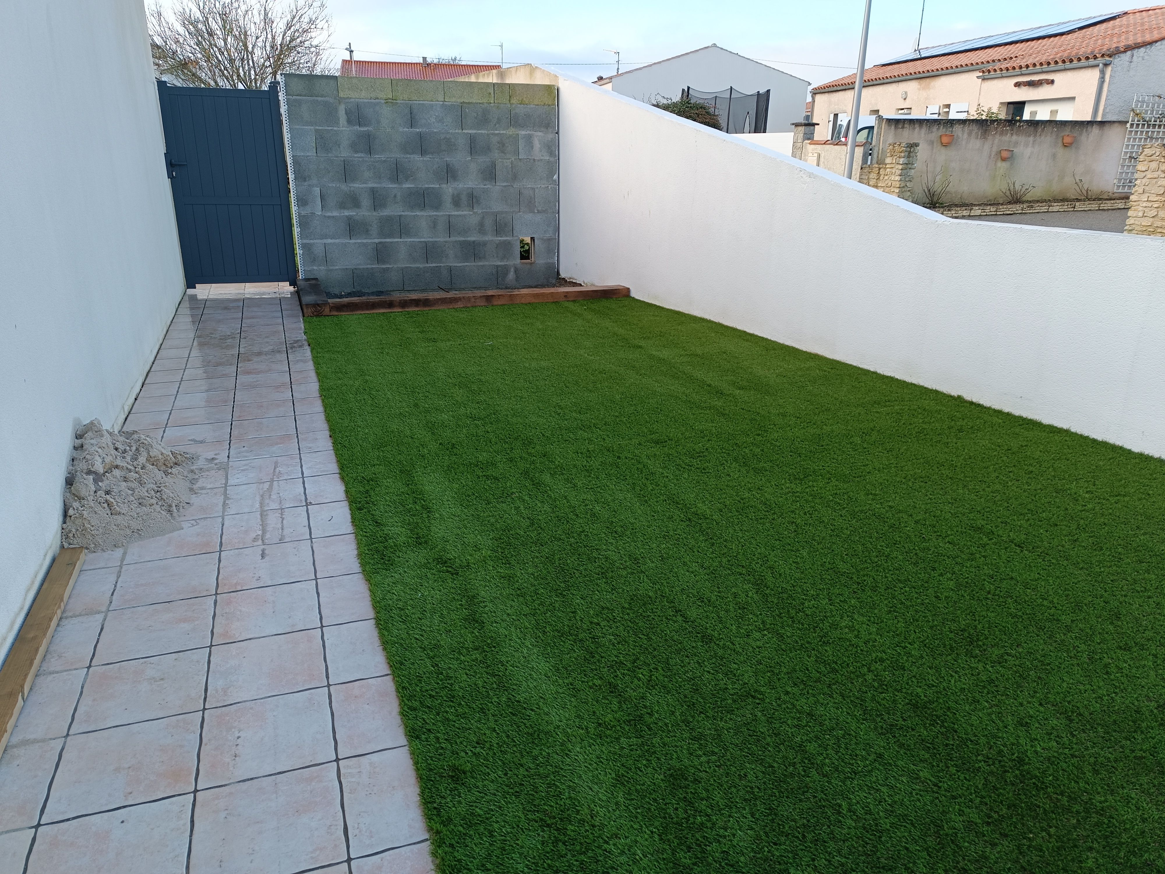 Gazon plaquage / semis Gazon synthétique Terrasses bois Maçonnerie paysagère Nidagravel (plaques stabilisatrices) Plantations Minéralisation ou paillage naturel Taille en tout genre (oliviers, rosiers, haies...)